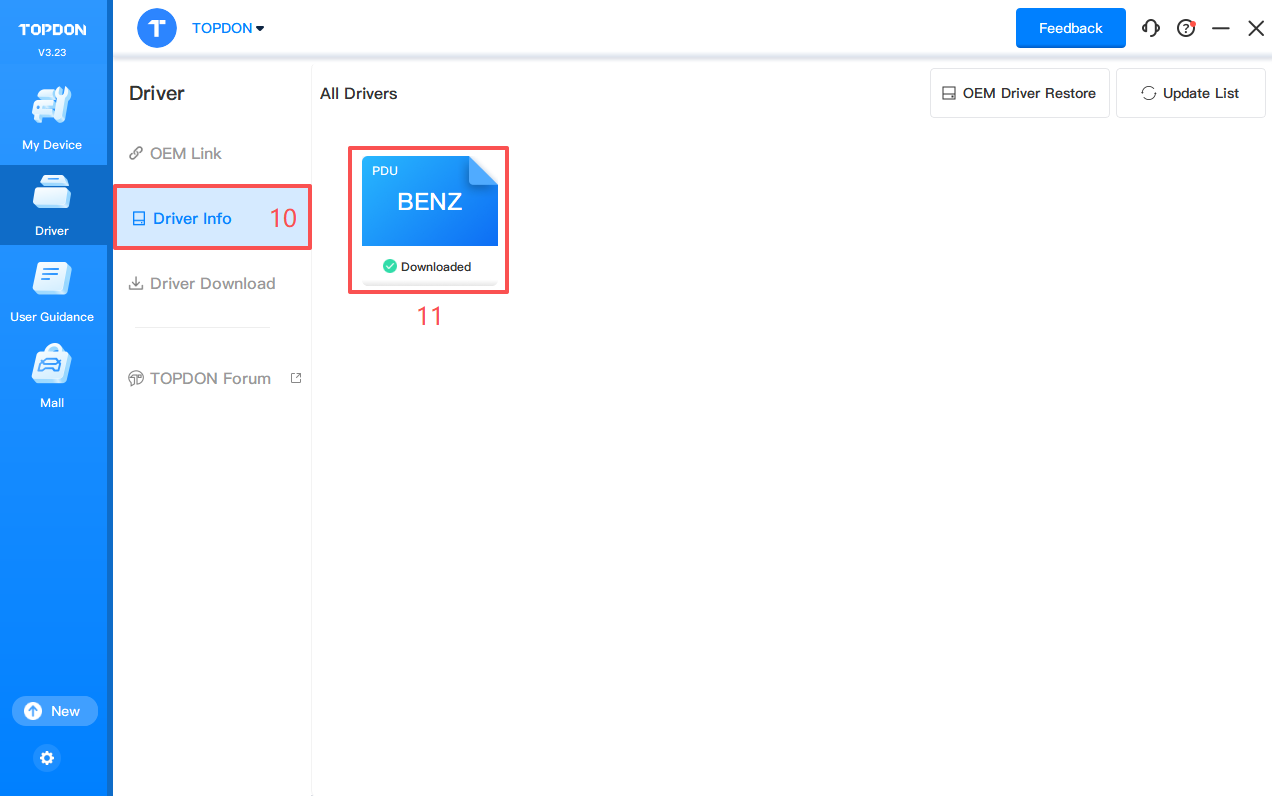 3. Click 【Driver】 > 【Driver Download】. Click 【BENZ】 and click 【Download】 to download the driver