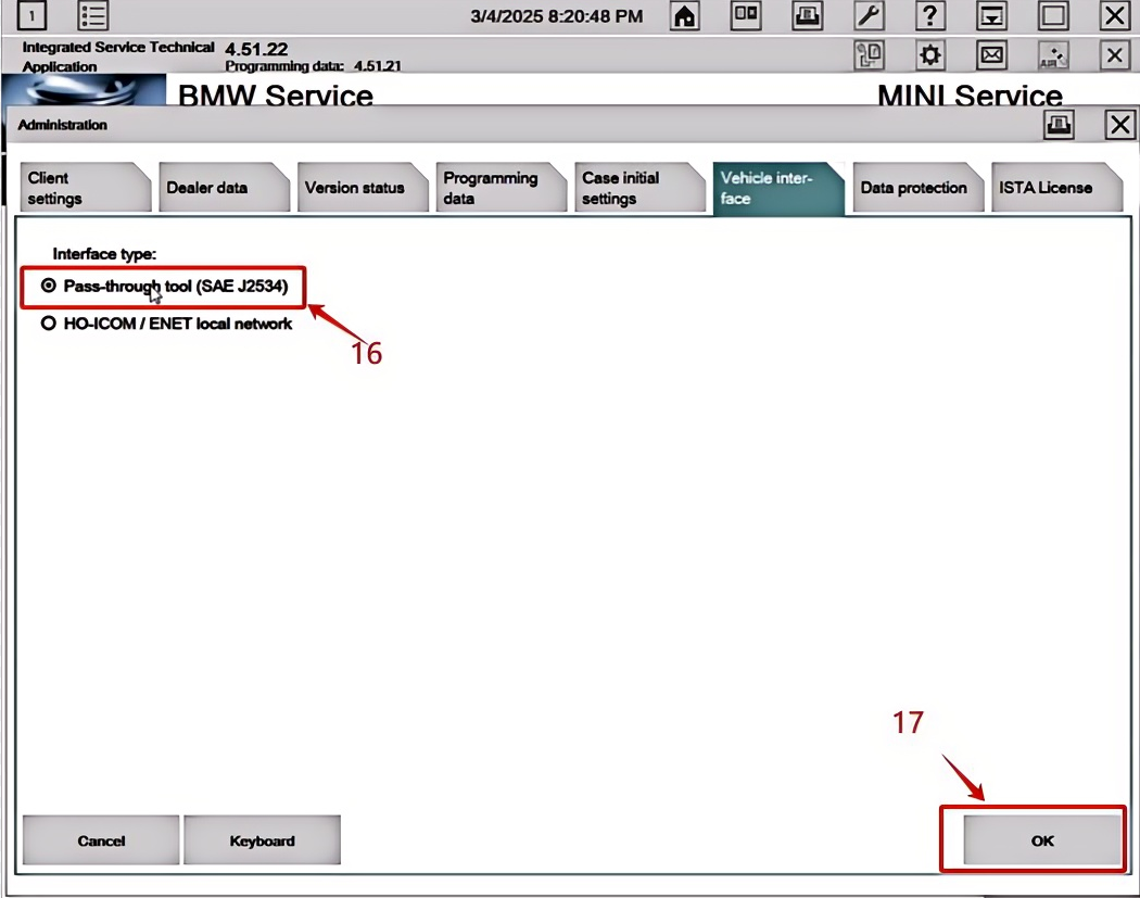 5. When using RLink J2534 devices, select RLink as the diagnostic interface on the OEM software. If you are connecting to the original VCI or third-party VCI, open the OEM software and select the original VCI or third-party VCI as the diagnostic interface. This driver will not have any impact.