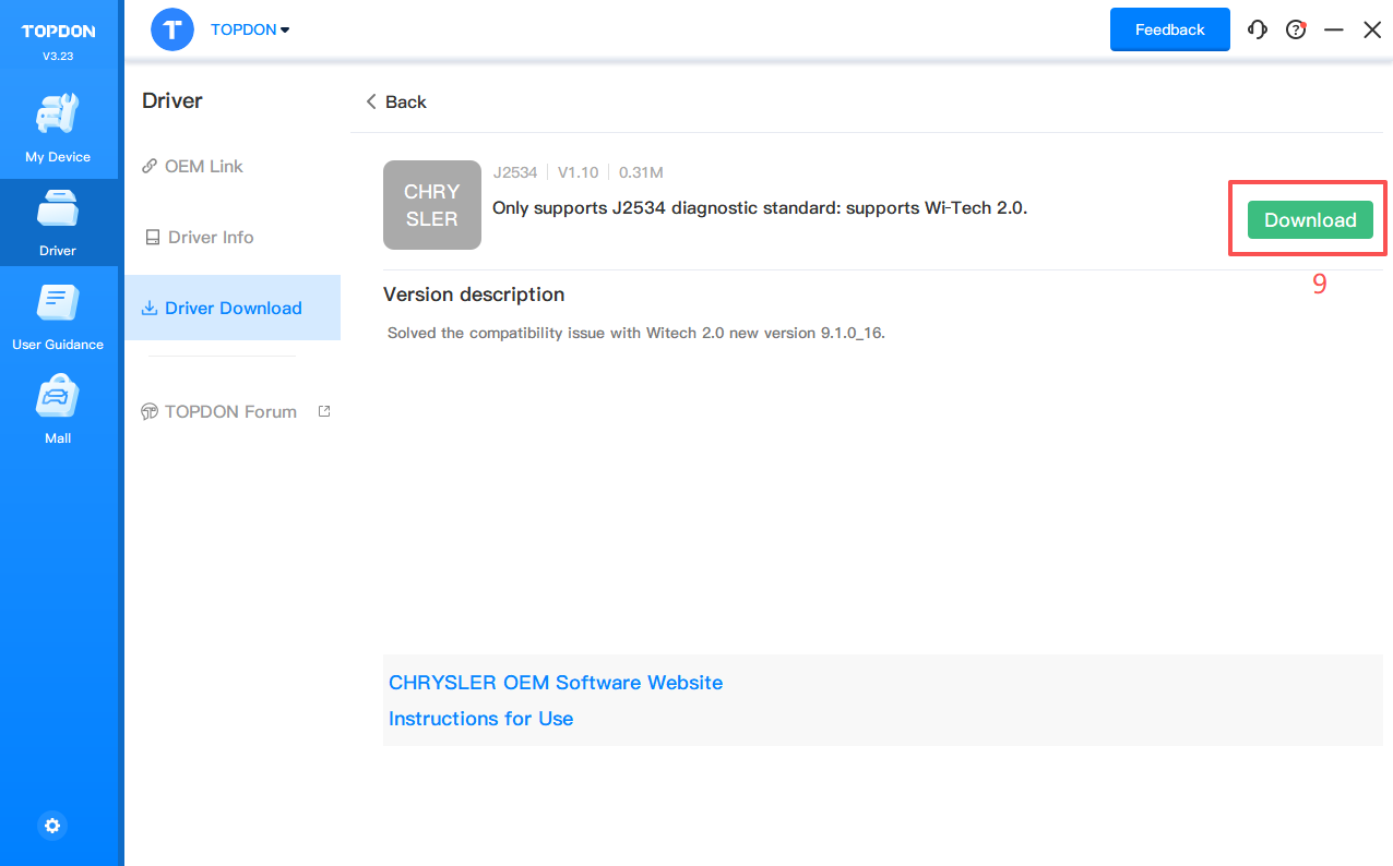 3. Click Driver > Driver Download.Click CHRYSLER and click Download to download the driver