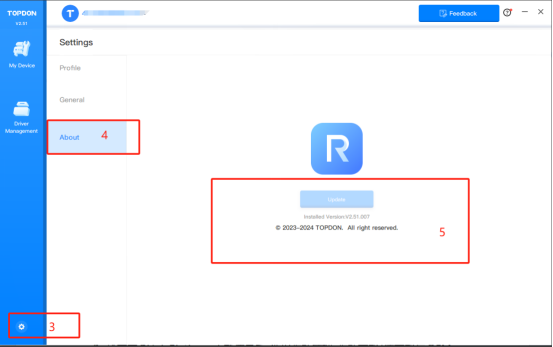 2. Click the settings icon. Then click About to check whether there is an update for the RLink Platform. If yes, click Update.