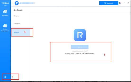 2. Click the settings icon. Then click About to check whether there is an update for the RLink Platform. If yes, click Update.