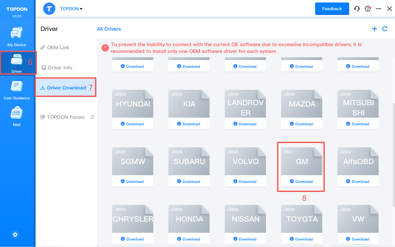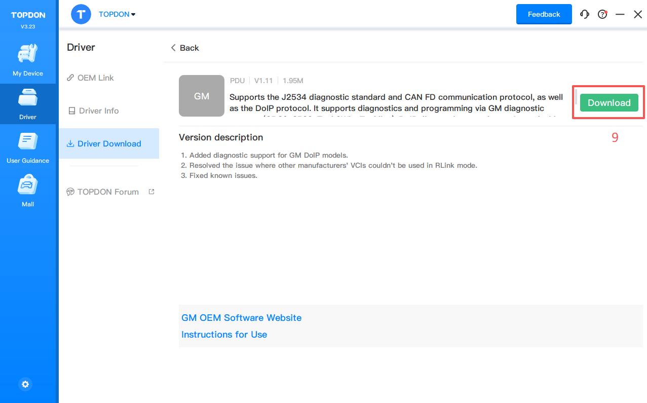 3. Click Driver > Driver Download.Click GM and click Download to download the driver.