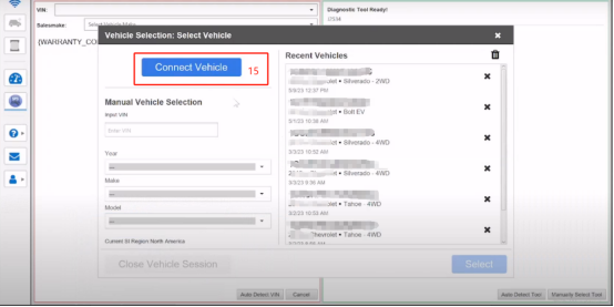 9. After entering the diagnostic page, click the ‘connect vehicle’ button.