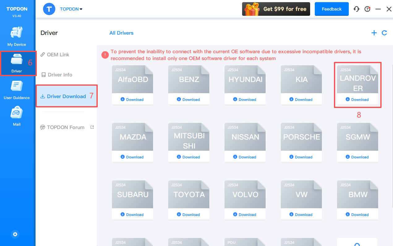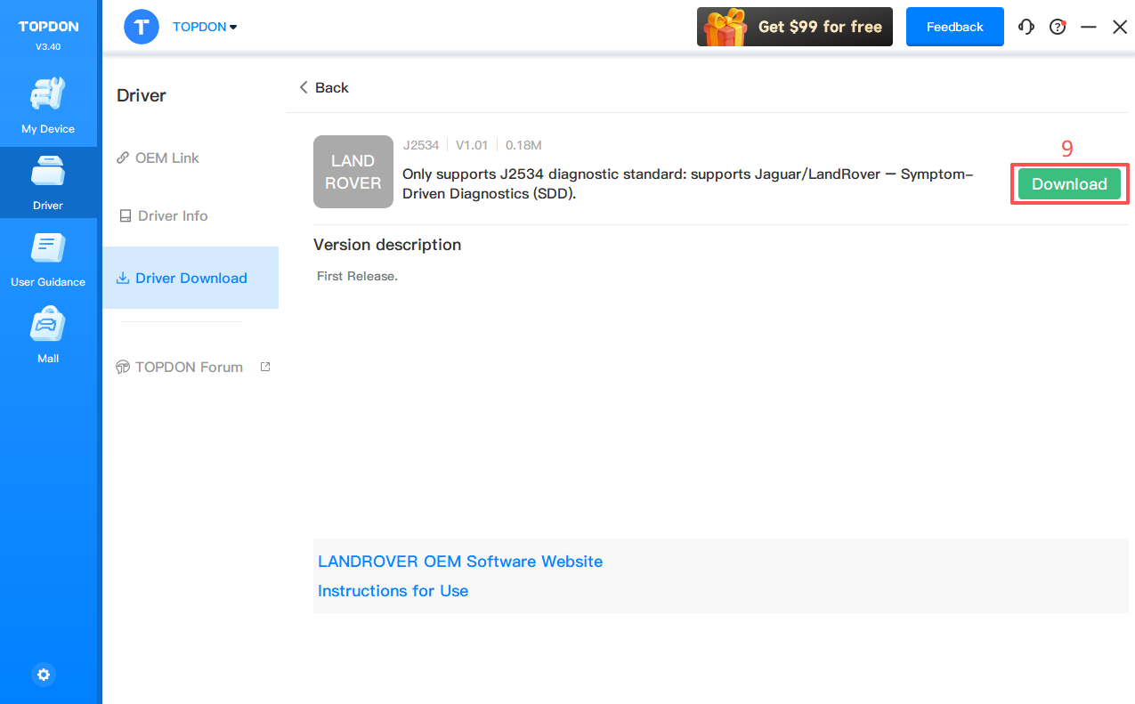 3. Click Driver > Driver Download.Click LANDROVER and click Download to download the driver.