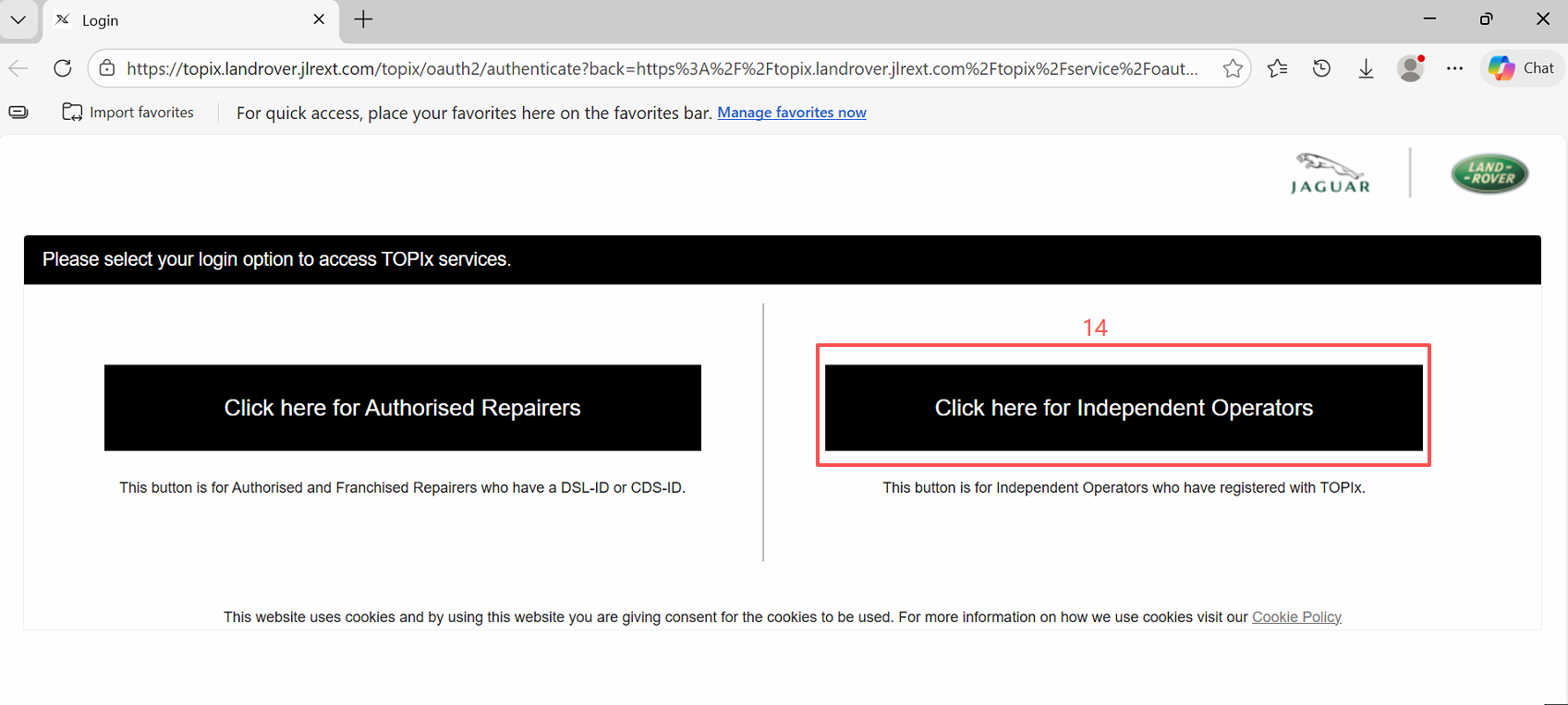 7.Select 【Click here for Independent Operators】 to log in with the account you subscribed to on the Land Rover official website.