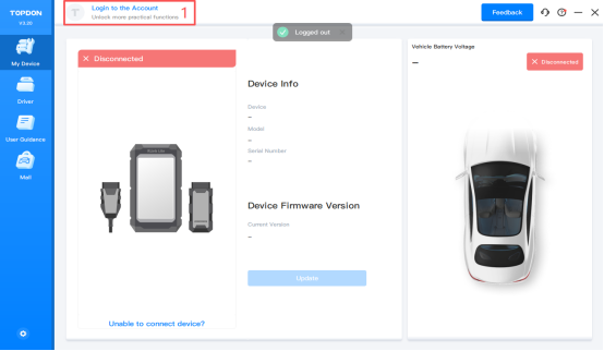 If you have bound and activated the device and installed the Nissan driver during your first use, logging in is not required for subsequent uses. You can simply launch the RLink Platform to perform vehicle diagnostics with the RLink J2534 devices.
