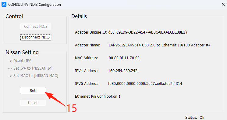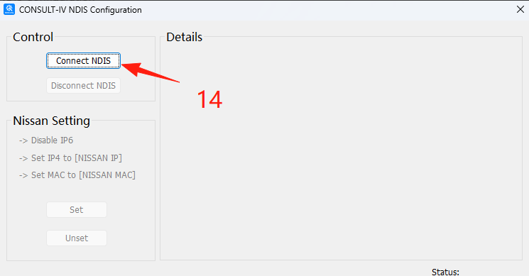 6. In the CONSULT-IV NDIS Configuration interface, click Connect NDIS to establish the connection.