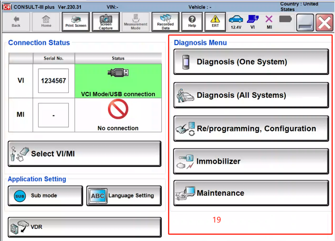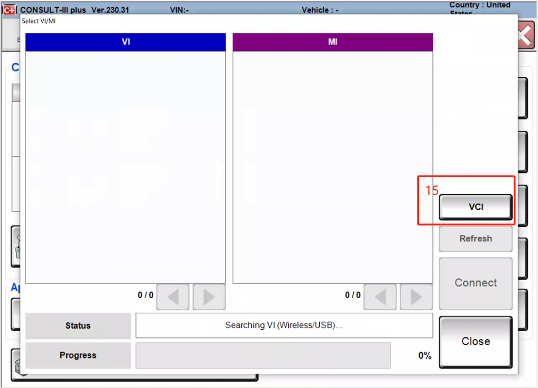 8. After selecting the driver, the VCI status will turn green. You can start vehicle diagnostics.