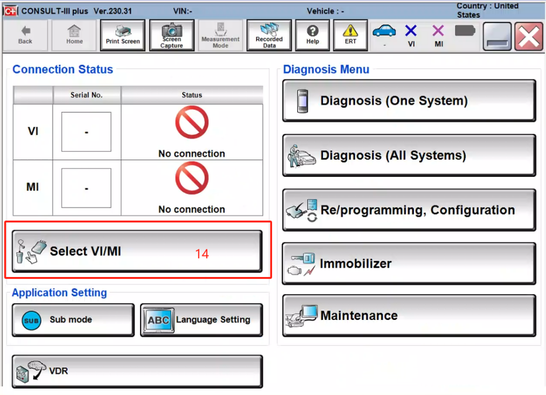 Note: The NISSAN software without the VCI option is not the R2R version and does not support direct use with RLink X7.