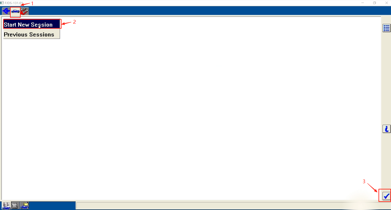 3. After completing the VCI interface settings, connect the device to a vehicle compatible with FJDS, and select Start New Session to begin diagnostics.