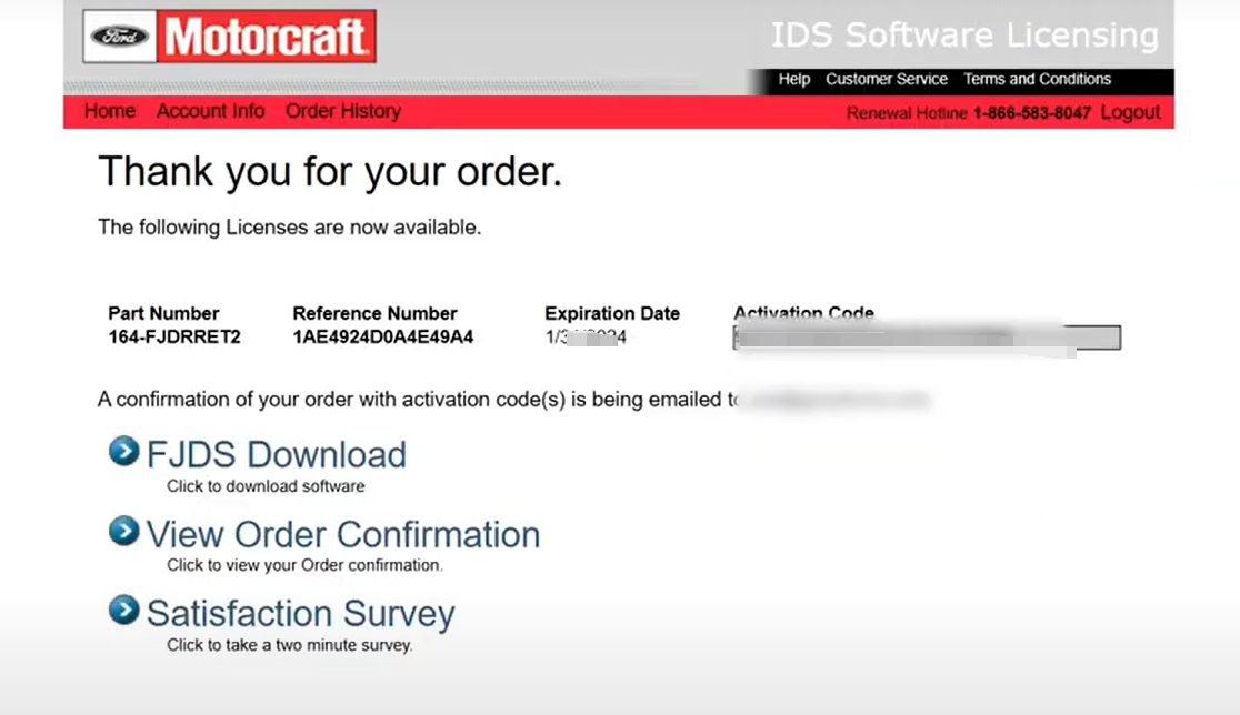 7. After payment completes, you will be redirected to the order page where you can view the activation code.