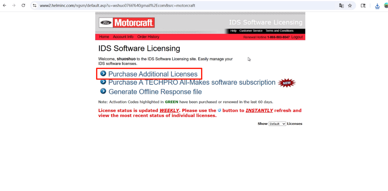 1. Click Diagnostic Tool Support > Software, and choose a desired OEM diagnostic software. Click Purchase Software.