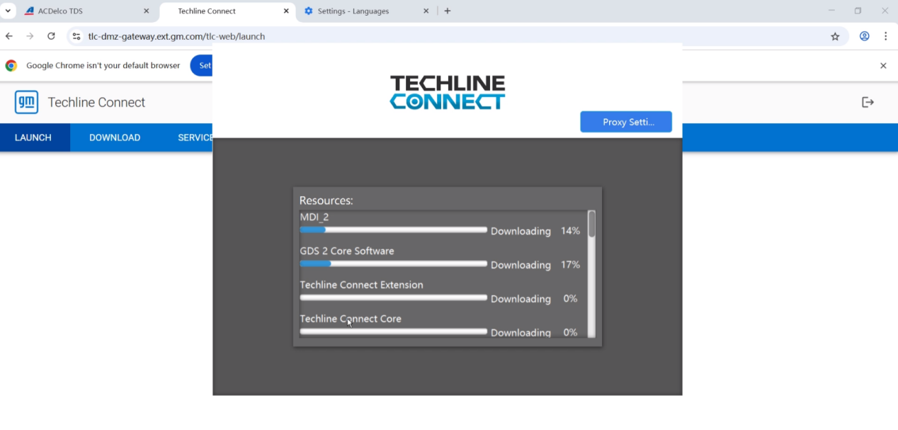 3. On first use, the system will automatically download and install the diagnostic software GDS2/Tech2Win/Techline/MDI 2. If the installation fails (excluding network issues), please return to the TLC website and click LAUNCH TECHLINE CONNECT again until installation succeeds.