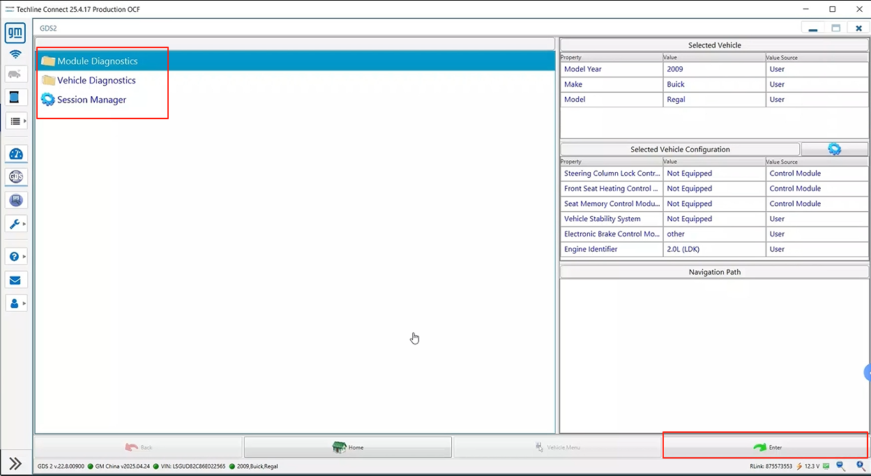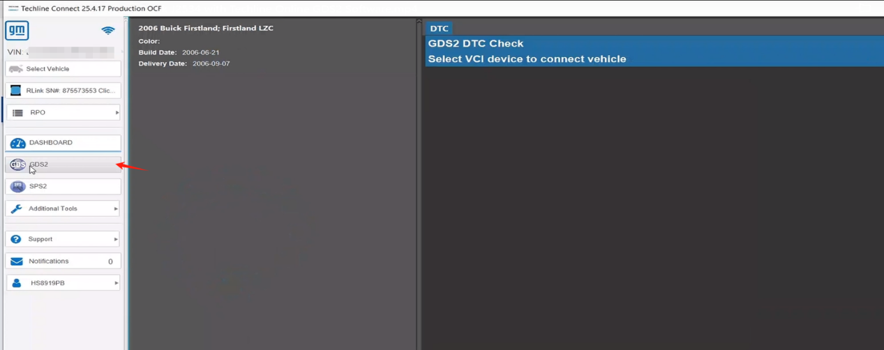 5. To perform diagnostics, click GDS2 to enter diagnostics mode after the software has identified the vehicle information.