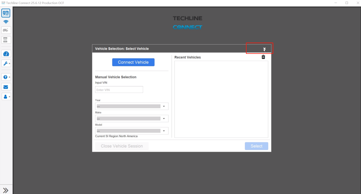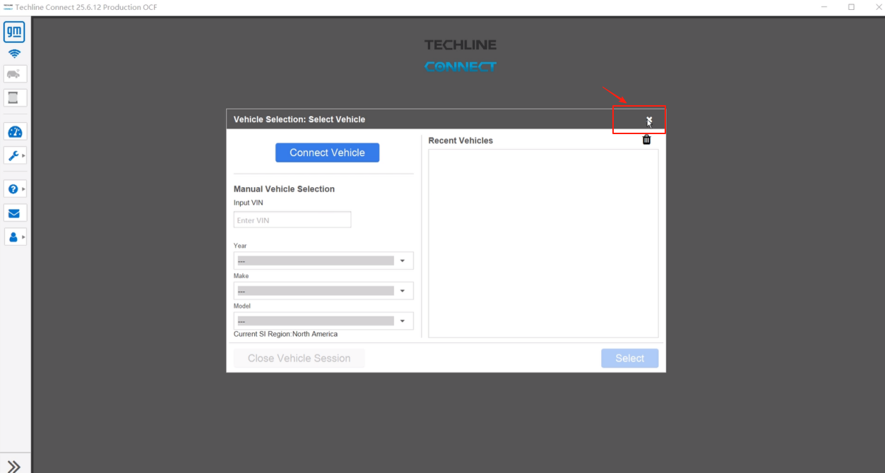 1. Open the Techline Connect. When the following window appears, simply close it.