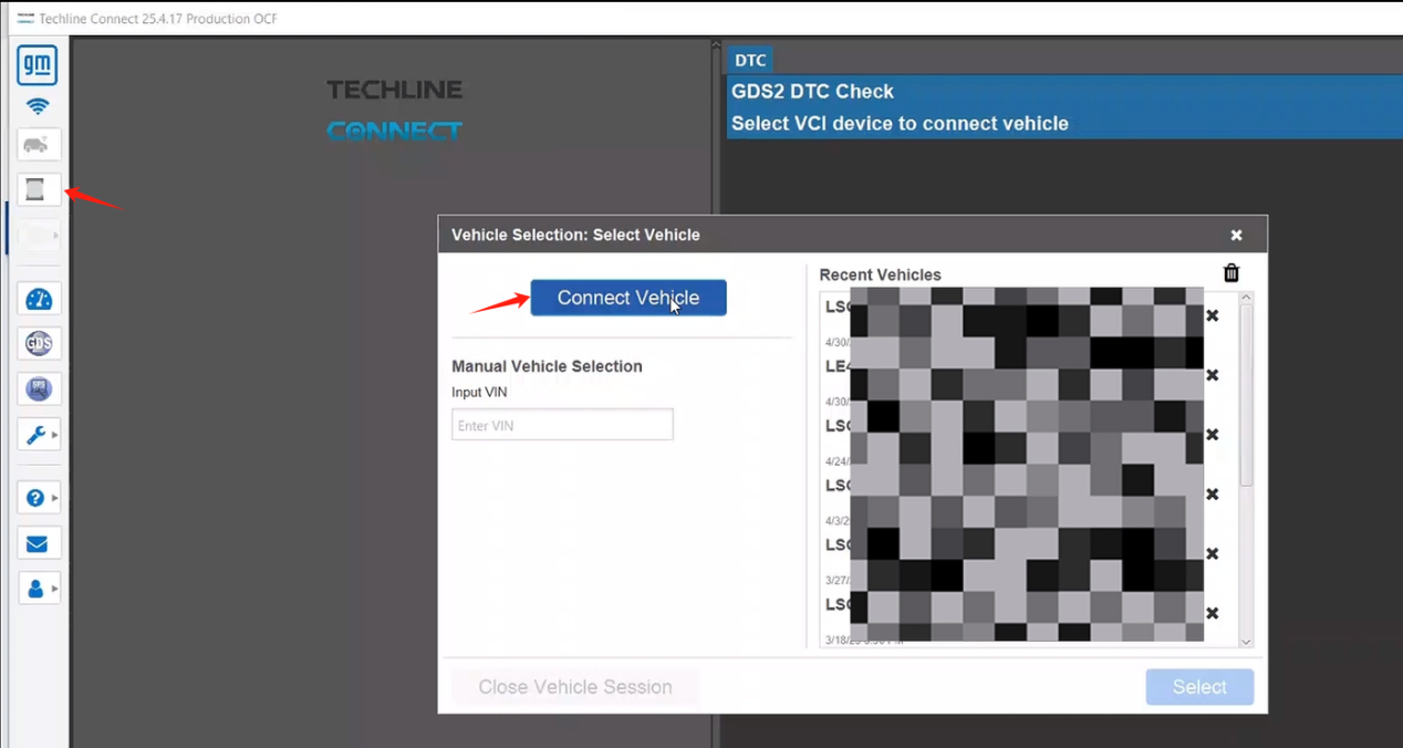 3. Click the VCI-shaped icon and click Connect Vehicle.