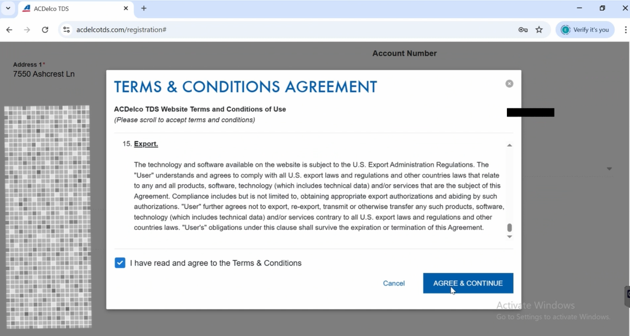 5. Click Login/Register, log in to your account, read the terms and conditions agreement, tick the checkbox and click AGREE & Continue.
