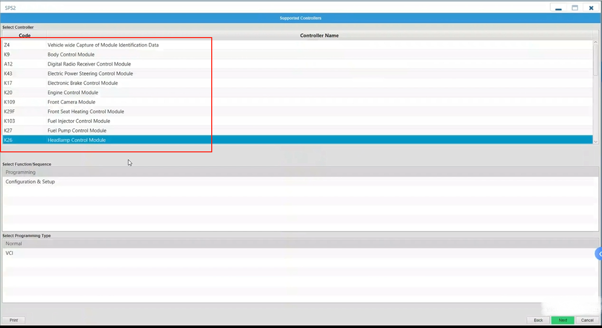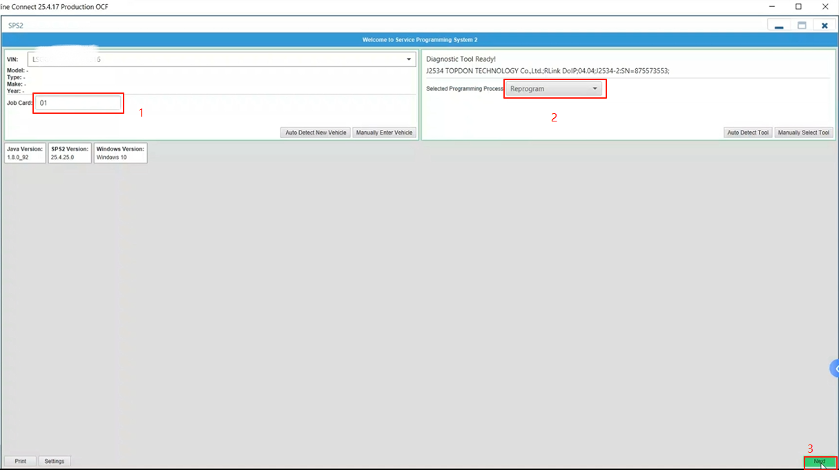 6. To perform programming, click SPS2 to enter the programming mode after the software has identified the vehicle information.