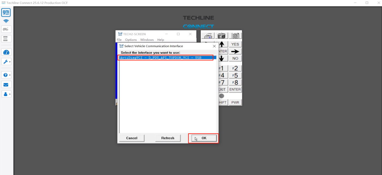 4. Select TOPDON VCI or RLink VCI from the list and click OK.