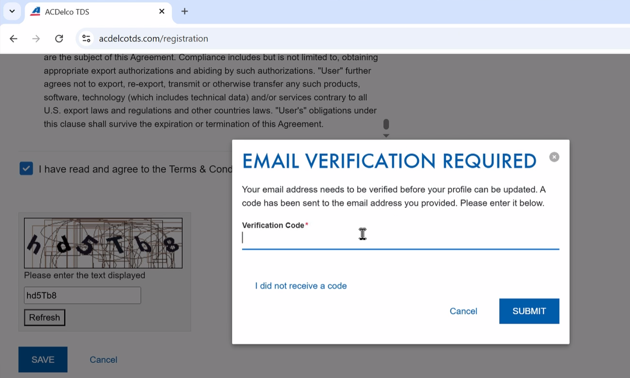 4. Check the email address you offered for the verification code. Copy and paste the code, then click SUBMIT to complete the registration process.