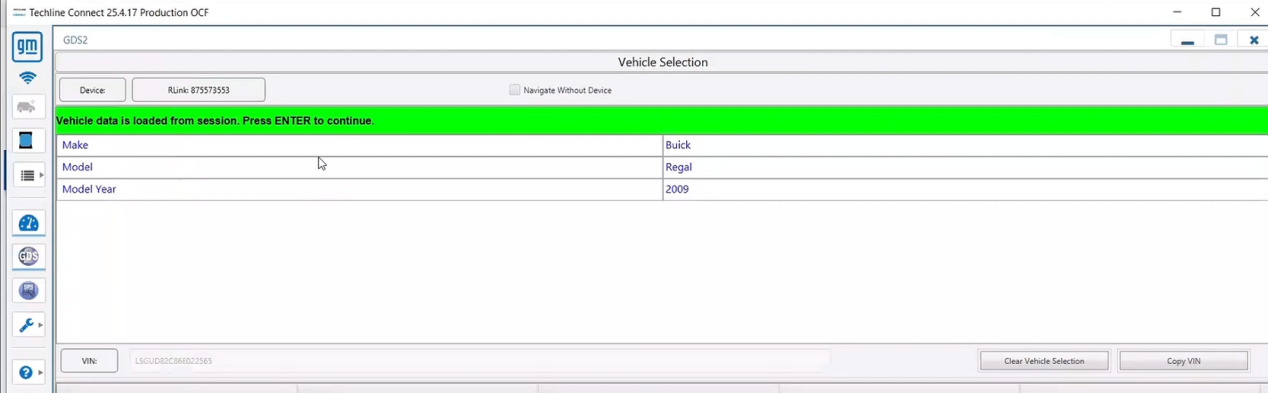 Before launching the OEM diagnostic software, ensure that you have downloaded, installed, and launched the RLink Platform, downloaded the GM driver, set RLink as the communication interface, and connected RLink X3 to the vehicle and your PC. For detailed information on these steps, refer to the Quick User Guide included in the package and follow the instructions carefully.