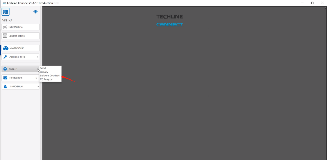 1. Launch Techline Connect as previously instructed.
