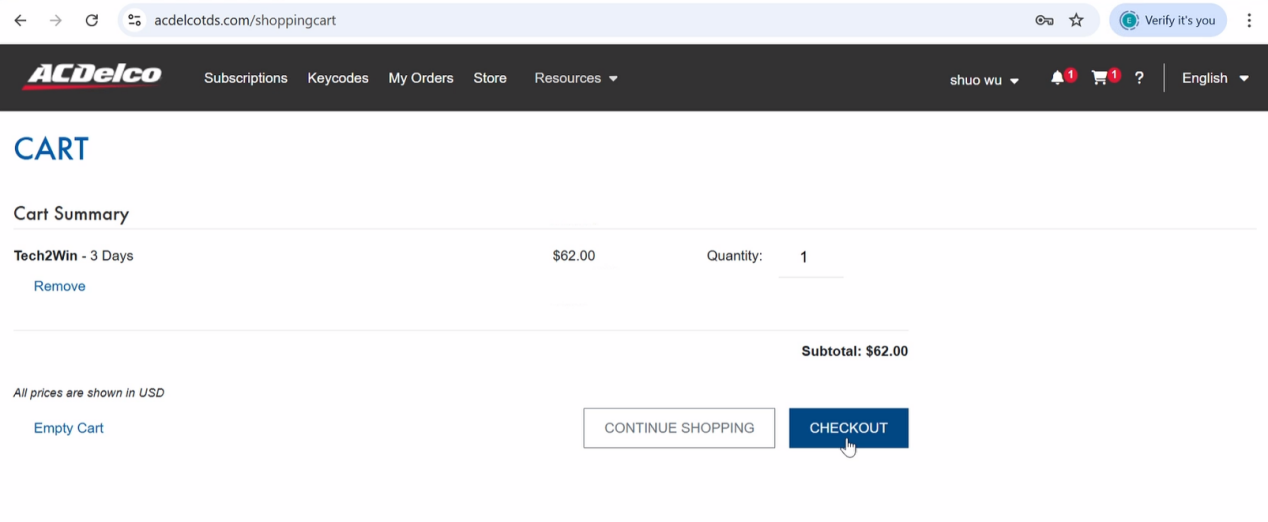 7. Confirm the software name, validation period, quantity and price, then click CHECKOUT to proceed with the payment.