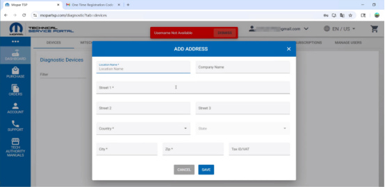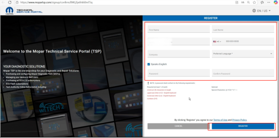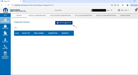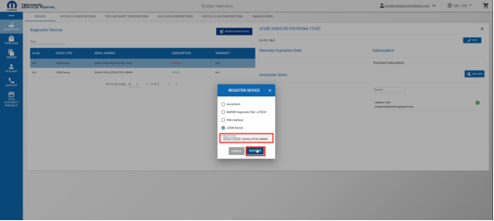 13.Choose J2534 Device from the list and paste the serial number in the input box. Click REGISTER.