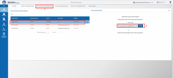 6. Then assign the Tech Authority Subscription to the registered email address.