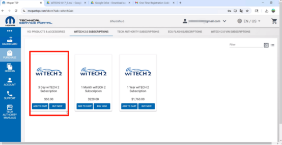 1. Go back to the web page and click PURCHASE > WITECH 2.0 SUBSCRIPTIONS, and choose a desired option.