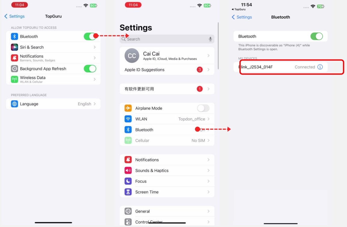 2. After establishing a connection with the TopScan or TopGuru app, if you want to switch to the OEM diagnostic software for vehicle diagnostics, it is recommended to disconnect the Bluetooth connection between the smartphone and the RLink device before proceeding.