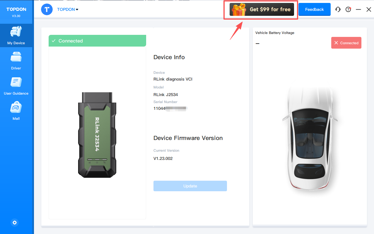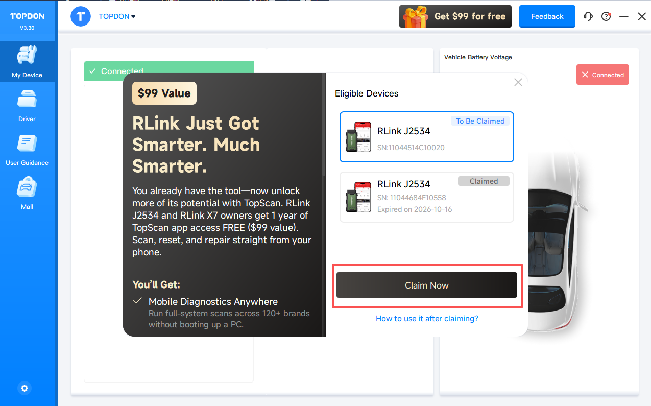 ③ Click Get $99 for free to claim the free 1-year benefits package for TopScan app access.