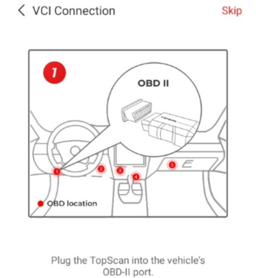 After logging in, follow the instructions in the app to connect the device to the vehicle's Data Link Connector (DLC).