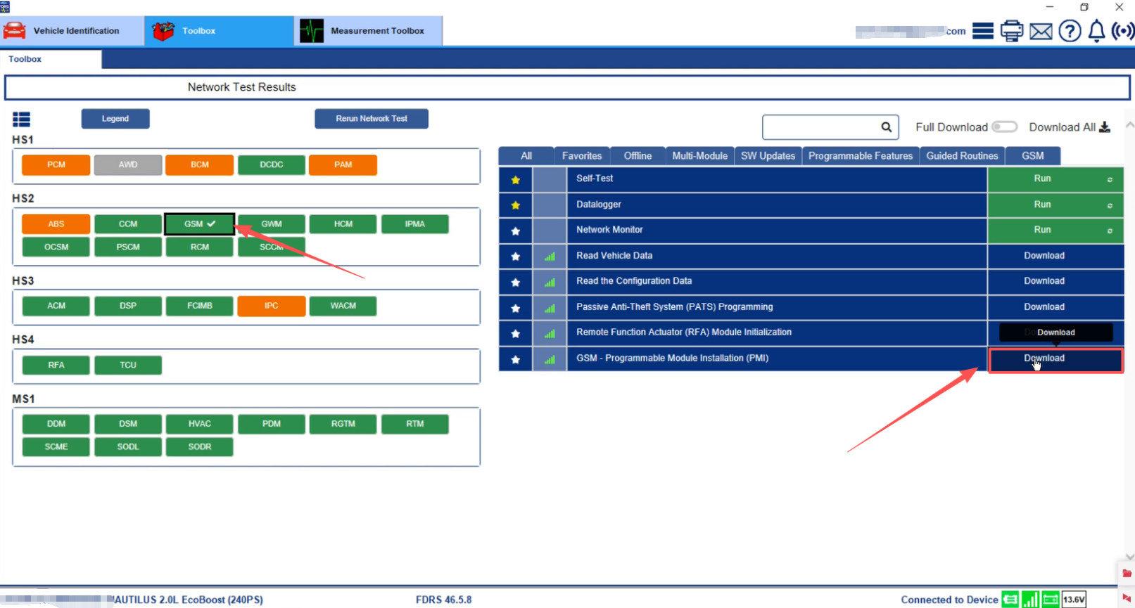 8.Select GSM and navigate to GSM - Programmable Module Installation (PMI), then click Download to start the programming.