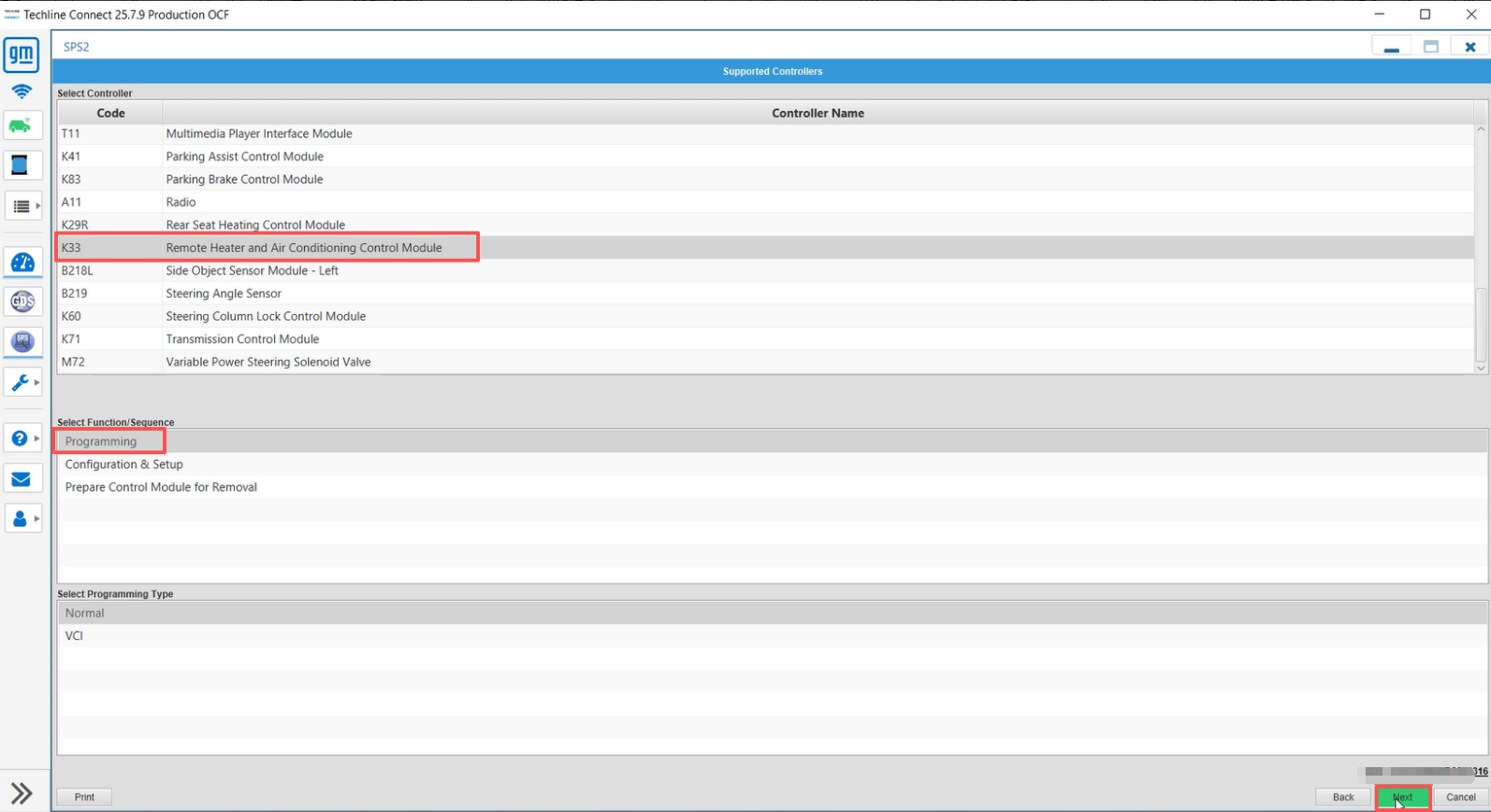 Select [K33 Remote Heater and Air Conditioning Control Module] and click [NEXT].