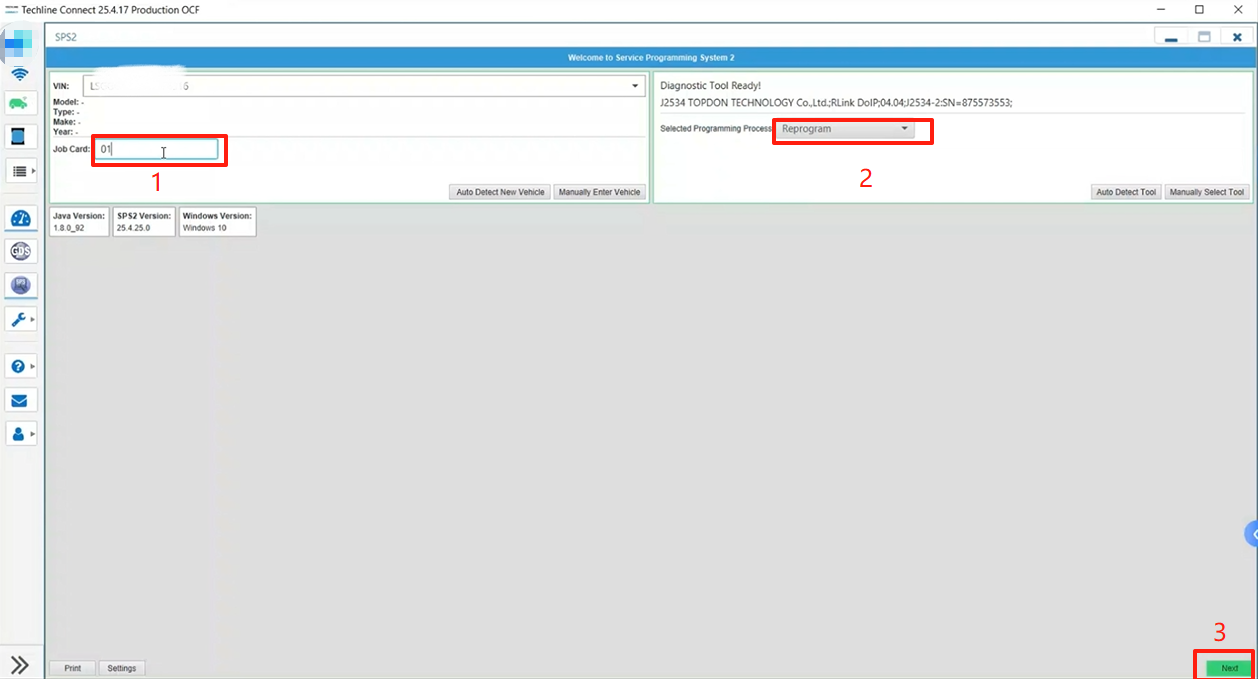 Before entering the SPS programming software, the SPS software will automatically launch a verification program to compare and validate vehicle information with server data.