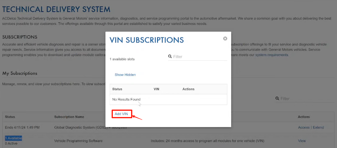 Click [Add VIN] to enter the VIN of the vehicle to be programmed.