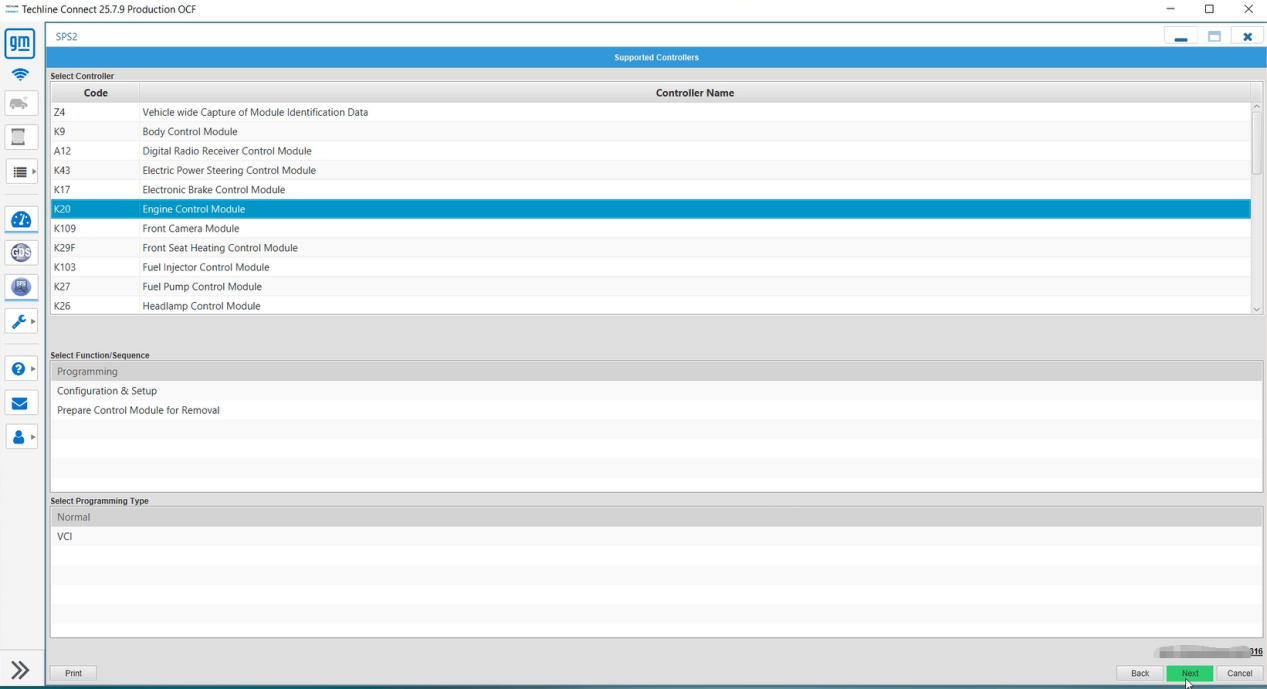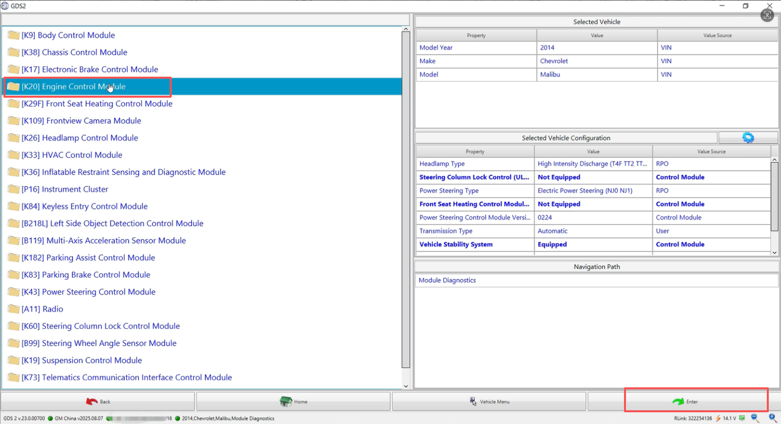 Choose [K20 Engine Control Module] and click [Enter] to proceed to the next step.