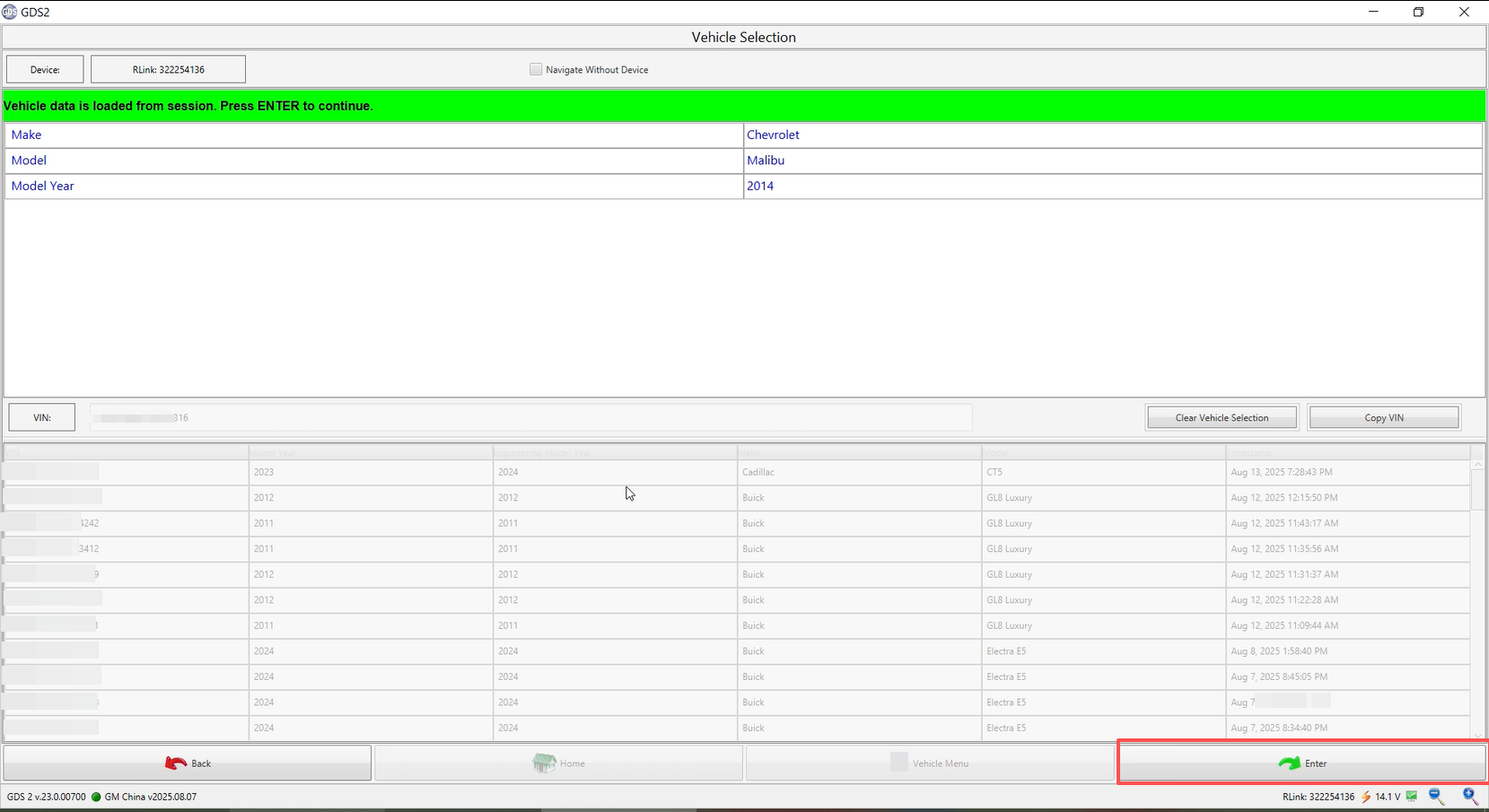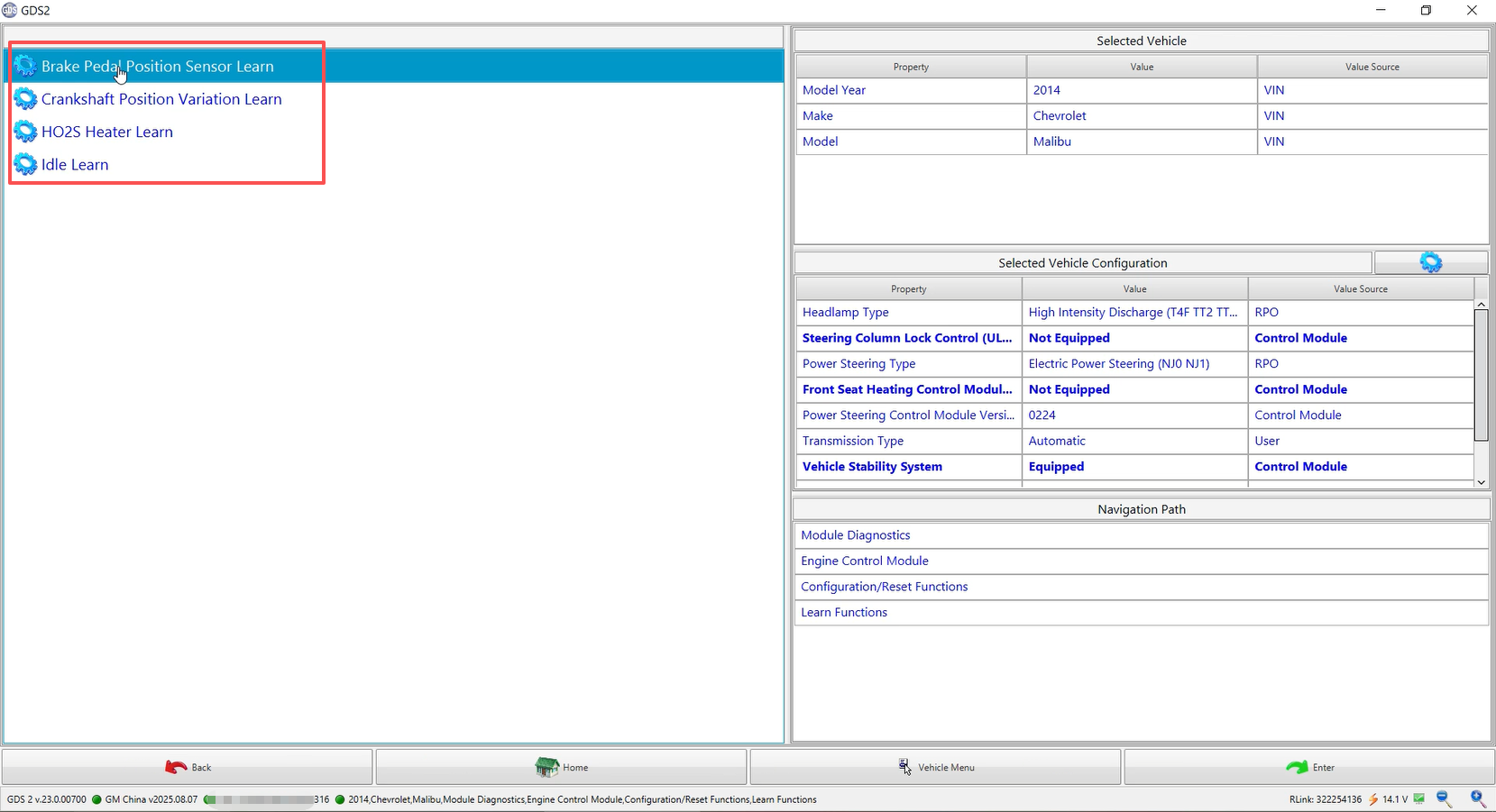 Once the RLink VCI successfully connects to the vehicle, the system will automatically read the relevant vehicle information. After carefully verifying the accuracy of the information, click the [SPS] icon to enter the programming operation page.