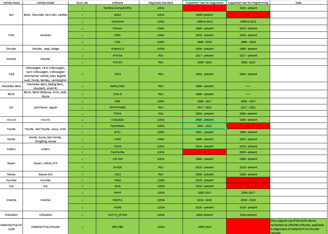 Q: Does RLink Lite support the function of cloning module data? A: RLink Lite are VCI devices compatible with OEM software from various vehicle brands, and can serve as replacements for the OEM diagnostic VCI. The capability to clone module data is ...