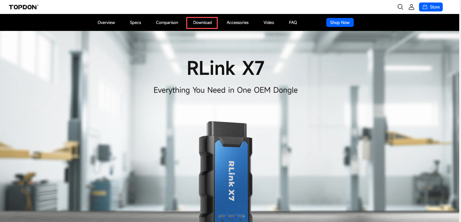 1. Log in to the TOPDON official website: https://www.topdon.com/ 2. Select Diagnostic Tool from the home screen and then click OEM Dongle. 3. Click RLink X3. 4. Click Download. 5. Click the icon to download the RLink Platform software. Note: If the ...