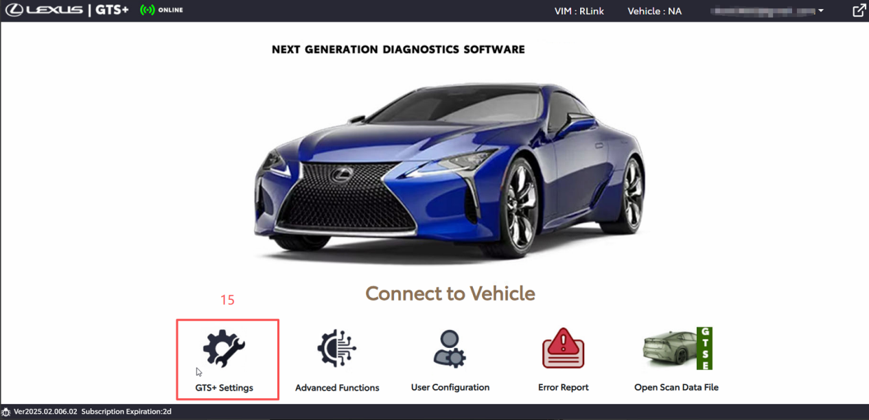 8. Click 【GTS+ Settings】and configure the VCI for diagnostics.