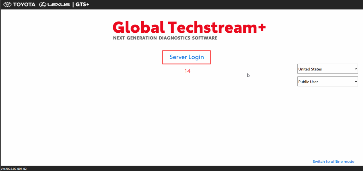 7. Click 【Server Login】 and log in with your TOYOTA account subscribed to the diagnostic service.