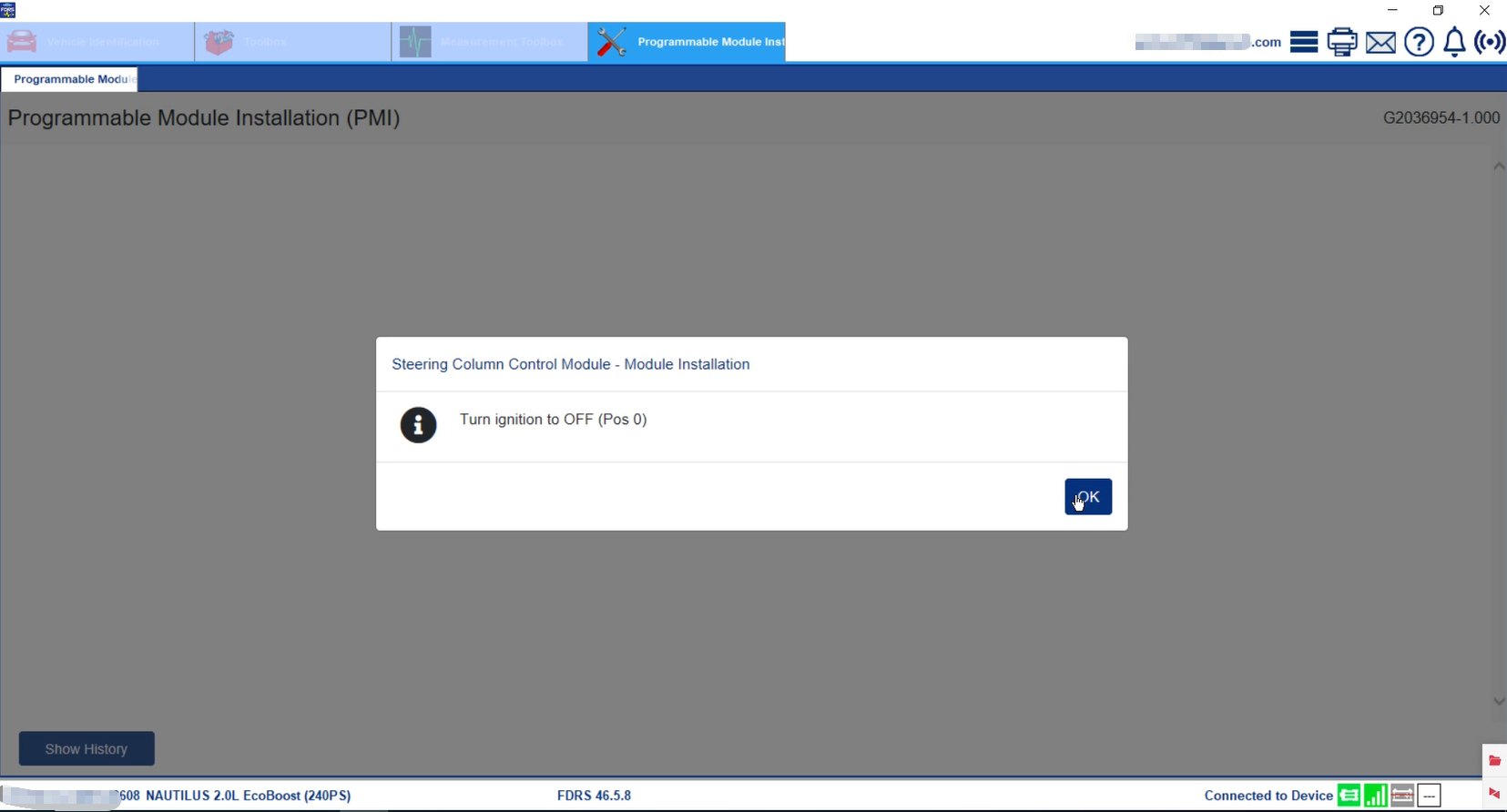 - 16.Turn off the ignition switch and click OK.