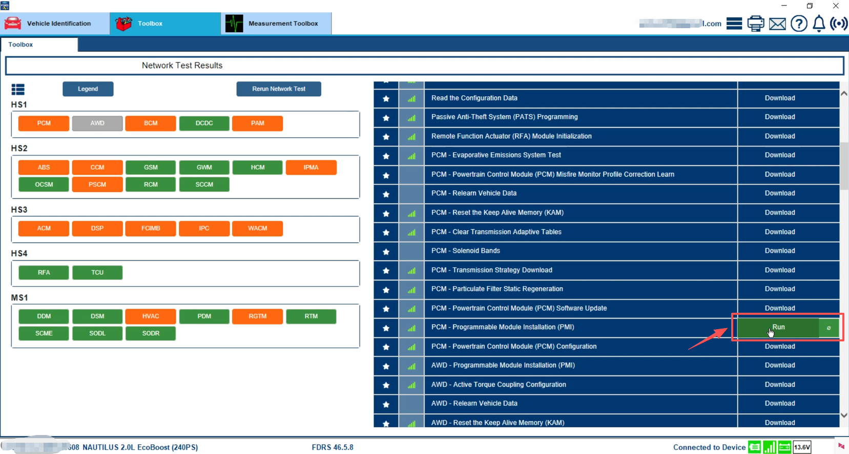 7. After reading the vehicle information, verify that the vehicle model is correct and click "Go to ToolBox".