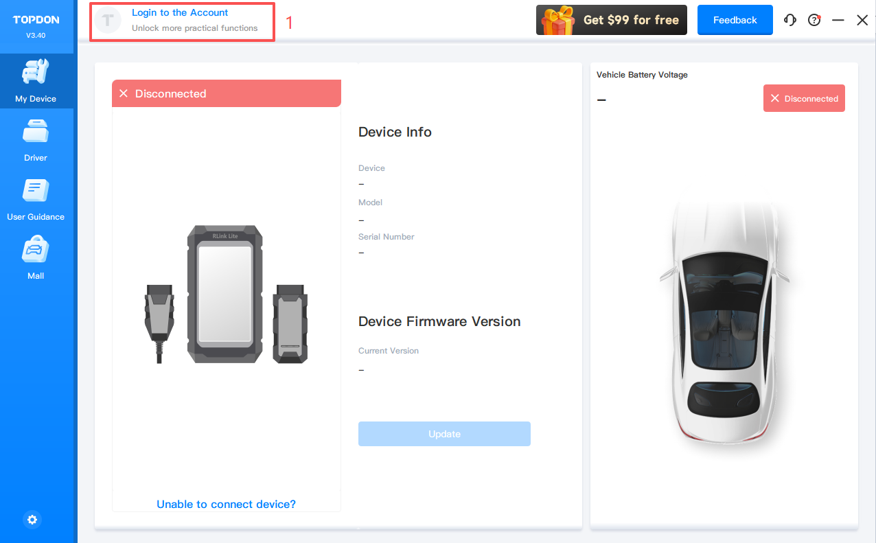 Tips:You need to install the VW/AUDI OEM software before use. If it's not installed yet, you can download and install it from the official VW/AUDI website. 1. Open the RLink Platform.Clicking “Login to the Account” will automatically